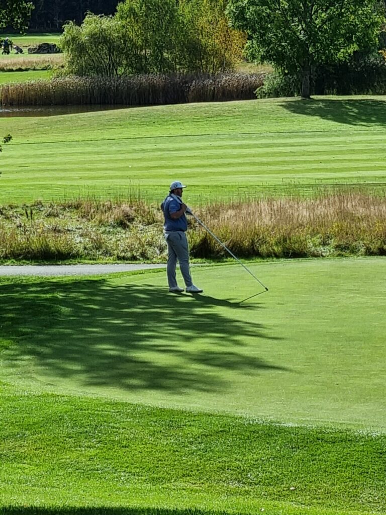 Dag 1 blev inte helt enligt plan. Jag har känt mej så stabil från Tee, men idag så var det för svajigt och måste rättas till inför morgondagen då rond 2 spelas. I övrigt är spelet godkänt och jag har ändå en god känsla inför morgondagen. Fint väder trevlig boll med 2 × Gustav. Sen gjorde farsan ett bra jobb med noggrann krattning i bunkern ! 🤣 Vi hörs/_Arvid