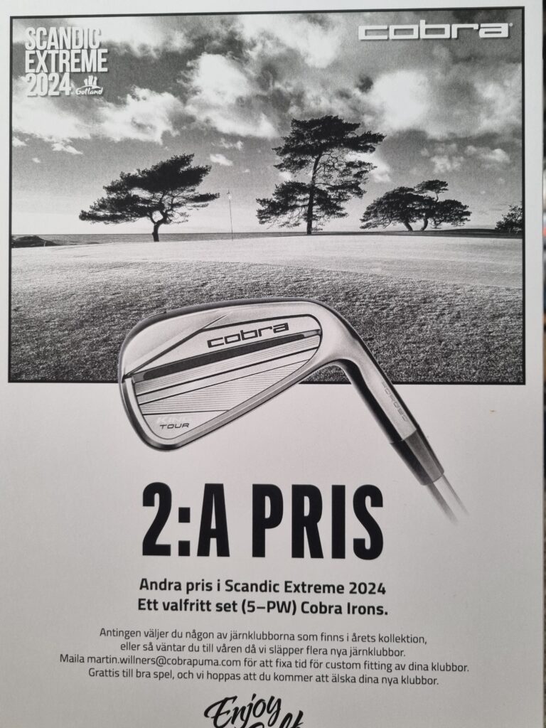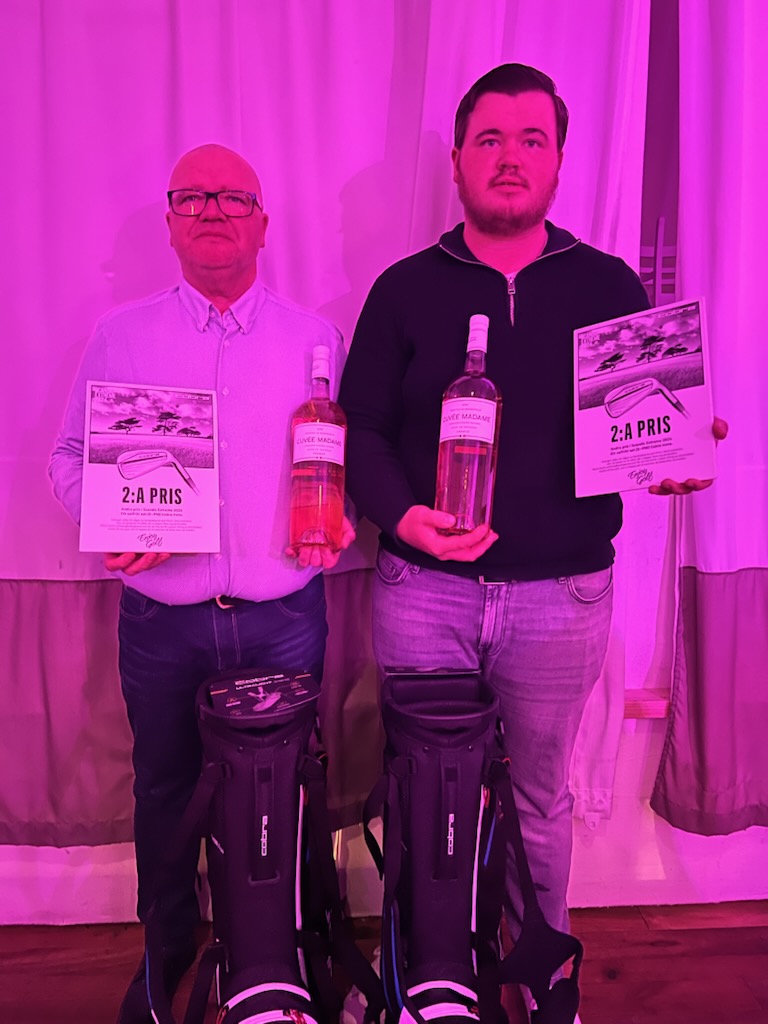 Efter en säsong med toppar och dalar,sjukdom med och motgångar golfmässigt så avslutade jag att spela en 2 dagars tävling på Visby GK. Pappa och jag var på lag och jag scorade bra från tufft uppsatt backtee 63 och kluriga flaggor. Första dagen var jag + 4 på18 hålaren + 5 på 9 hålaren (mindre bra) Inför dag dag 2 så låg vi på en 3: e plats.Dag 2 spelades 18 hål och jag spelade fin golf med en god känsla landade på + 1. Farsan skötte sig bra och gjorde vad som.kunde förväntas av honom + 1 första dagen 💪. Lite sämre på 9 hålaren och sista 18 dag 2. Men det rann inte iväg och det är starkt. Vi kom på andra plats och fick pris enligt bilden ! 😂 Jag lyckades även knipa 2 närmast hål priser (2 golfbagar från Puma Cobra ) Nu väntar vinterträning ! Tack alla samarbetspartners för i år så hörs vi och gasar på nästa säsong ! 💪💪💪
