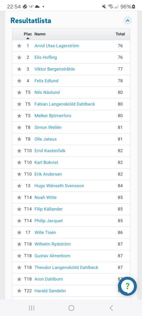 En 11:e plats av 50 talet deltagare efter varierande spel där,jag spelade aggressivt och bra från tee. Wedgarna skulle varit ett snäpp bättre så hade jag löst en direktplats till div 2 i sista omgången. Men så blev det tyvärr inte denna gång trots att jag kämpade, jagade och chansade på slutet . Nu är det båt hem och sen upp och bege sig till Slite för tävling imorgonbitti ! 👊 //Arvid