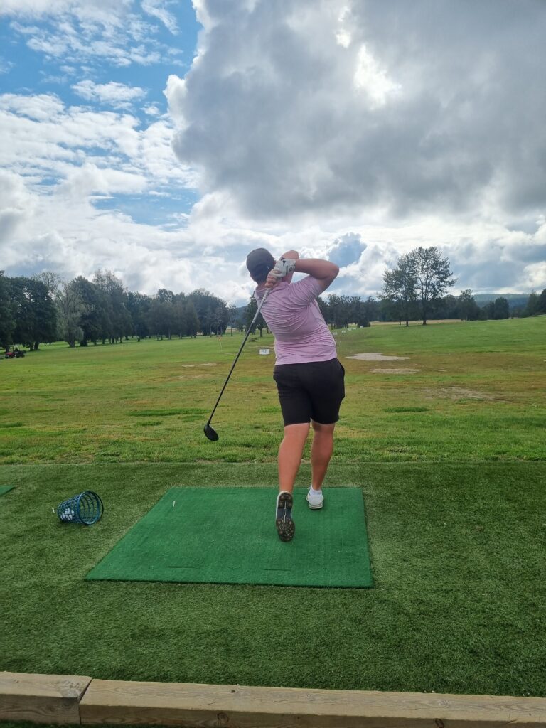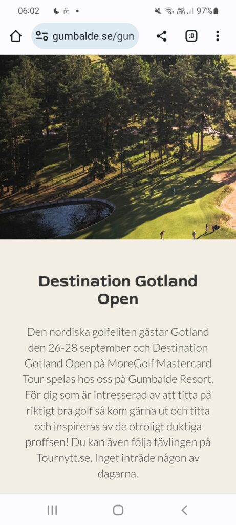 Godmorgon idag bär det av med båt till och bil mot Vetlanda för inspelsvarv.Jag tävlar där imorgon och enligt pappa är det en knixig och trevlig bana. Jag ska fokusera och försöka avsluta Juniortouren med en så hög placering som möjligt. Och så fick jag ett glädjande besked igår att jag kom med på en Opentävling med ett starkt startfält på Gumbalde GK nu i slutet på September. Därför åkte jag och ”lill Rory” Elias Peterson dit och spelade igår ! 😁👊