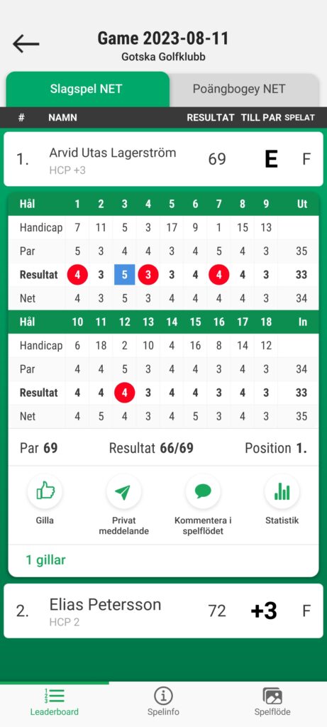 Idag var det dags för DM på Gotska GK och banan skulle jag säga överraskade mej positivt med bra greener och en grönare bana än den jag tidigare spelat på där. Förmiddagens spel var jag långt ifrån nöjd med (sköt en 77 med ett katastrof hål ) Så dom första 18 hålen la vi snabbt till historien. Lite lunch och sen på det igen och försöka förbättra mej vilket jag också gjorde och spelade på par 69 slag sista varvet och det kändes skönt. Det resultatet gav mej vinst i H 20-29 år. Och en 5:e plats i herrklassen.Skulle vilja lyfta fram Jonas Flodman som spelade fantastisk fin golf väldigt roligt att se.Tack till Jonas Flodman och Måns Yttergren för många skratt och en rolig dag med er på banan.Tack även till min pappa Kjell Lagerström som får godkänt med beröm då han för första gången gick caddie åt mej.